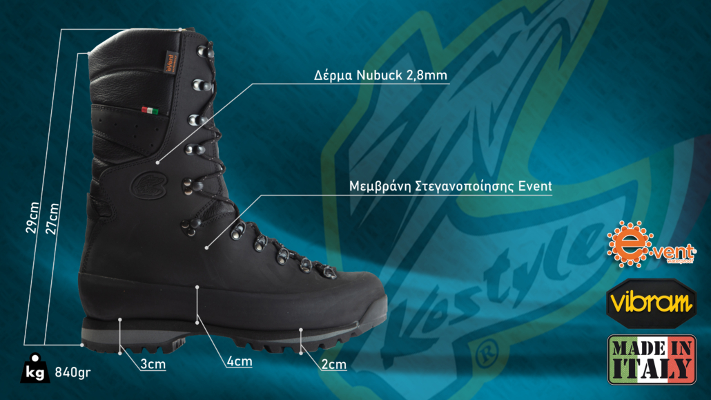 • Ανώτερο Μέρος: Κατασκευασμένα από αδιάβροχο δέρμα Nubuk υψηλής αντοχής, προσφέρουν εξαιρετική προστασία από τα στοιχεία, τη βροχή, τη λάσπη και τις φθορές.