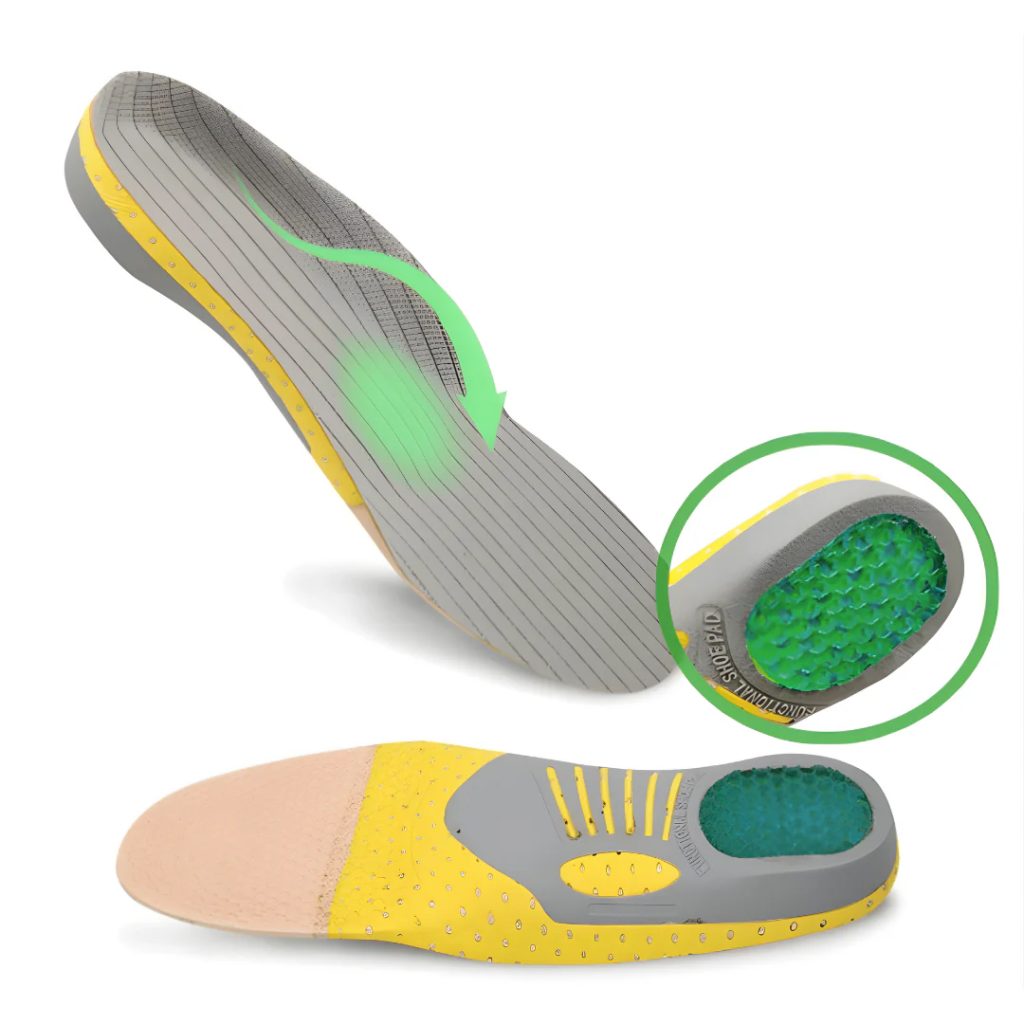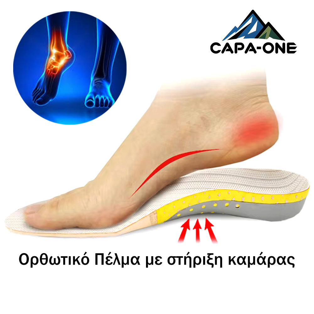 - Δομημένη Στήριξη: Το άκαμπτο ένθετο στηρίζει την διαμήκη καμάρα του ποδιού, ενώ τα μαξιλαράκια στηρίζουν την εγκάρσια καμάρα, εξασφαλίζοντας σωστή στάση του σώματος.